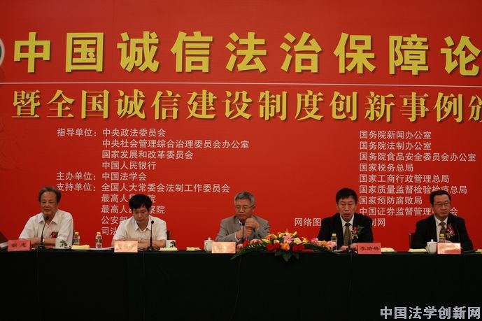 為了響應黨中央、國務院關于大力推進社會誠信體系建設的號召,促進誠信體系建設的規(guī)范化、法治化,由中國法學會主辦,中央政法委員會、中央綜治辦、國家發(fā)改委、中國人民銀行指導,全國人大常委會法工委、最高人民法院、最高人民檢察院、公安部、司法部、國務院新聞辦、國務院法制辦、國務院食品安全辦、國家稅務總局、國家工商總局、國家質檢總局、國家預防腐敗局、證監(jiān)會等13家中央部門共同支持的“中國誠信法治保障論壇 暨全國誠信建設制度創(chuàng)新事例頒獎”8月17日在人民大會堂舉行。全國政協(xié)副主席、黨組成員李金華同志出席論壇并講話。中央政法委副秘書長、中央綜治辦主任陳訓秋同志,中國法學會黨組書記、常務副會長陳冀平同志,國家發(fā)改委副主任連維良同志在論壇開幕式上致辭。論壇開幕式由中國法學會專職副會長李清林同志主持。