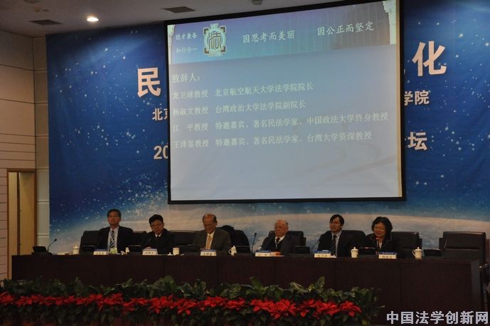 開幕式上,北航法學(xué)院龍衛(wèi)球院長(zhǎng)和臺(tái)灣政治大學(xué)楊淑文副院長(zhǎng)分別代表主辦方致辭,著名民法學(xué)者、中國(guó)政法大學(xué)