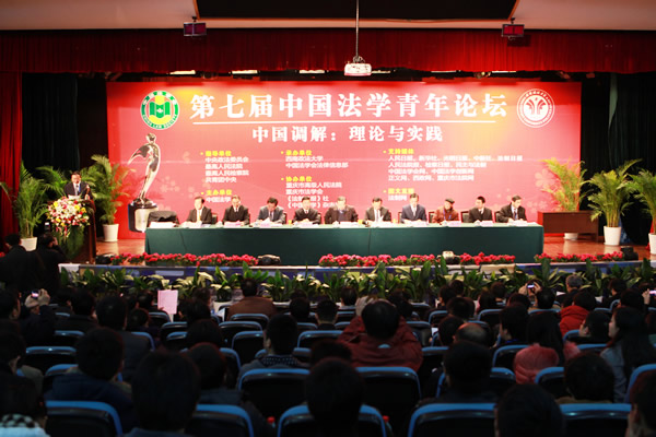 12月22日,由中央政法委員會(huì)、最高人民法院、最高人民檢察院、共青團(tuán)中央作為指導(dǎo)單位,中國法學(xué)會(huì)主辦,西南政法大學(xué)和中國法學(xué)會(huì)法律信息部共同承辦的第七屆中國法學(xué)青年論壇,在西南政法大學(xué)隆重舉行。中國法學(xué)會(huì)副會(huì)長李清林、最高人民法院副院長江必新、最高人民檢察院檢委會(huì)副部級專職委員童建明、重慶市高級人民法院院長錢鋒、中央政法委綜治二室主任陳顯輝等出席論壇并講話。論壇主題為“中國調(diào)解:理論與實(shí)踐”。通過全國征文活動(dòng)遴選產(chǎn)生的12位青年法學(xué)法律工作者,與中央政法委、全國人大法工委、最高人民法院、最高人民檢察院、司法部、中國法學(xué)會(huì)以及北京大學(xué)、清華大學(xué)、中國人民大學(xué)等高校的知名專家學(xué)者,針對“調(diào)解的一般理論和大調(diào)解機(jī)制”、“法院調(diào)解和人民調(diào)解”、“刑事和解、行政訴訟和解及勞動(dòng)爭議調(diào)解”等三個(gè)專題進(jìn)行了熱烈深入的交流和討論。論壇指導(dǎo)單位、協(xié)辦單位的領(lǐng)導(dǎo)、來自法學(xué)理論和實(shí)踐部門的專家學(xué)者、重慶市法學(xué)、法律工作者代表和西南政法大學(xué)的師生近400人參加了論壇。論壇開幕式由西南政法大學(xué)校長付子堂教授主持,校黨委書記張國林教授致歡迎辭。全國杰出資深法學(xué)家、年逾90高齡、德高望重的金平教授也做了精彩的發(fā)言。