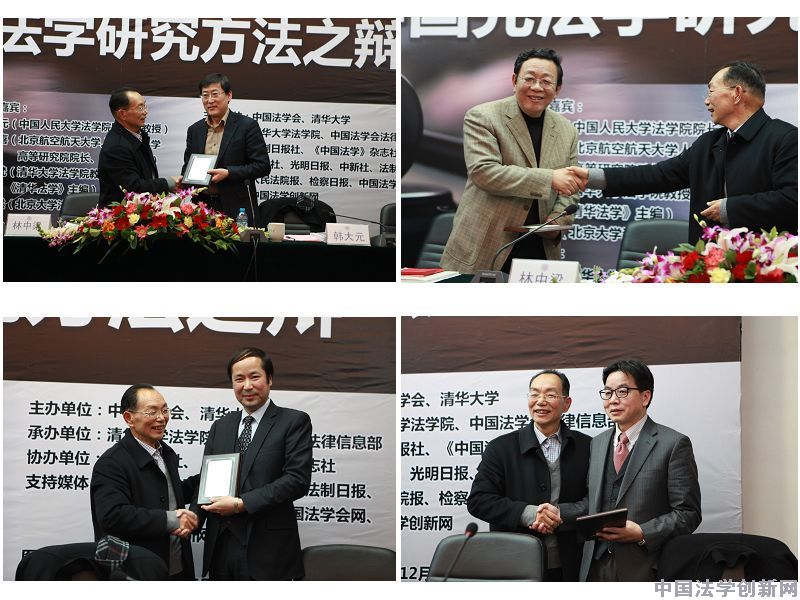 12月5日下午,由中國法學會、清華大學共同主辦,法制日報社協(xié)辦,中國法學會法律信息部、清華大學法學院共同承辦的第8期中國法學創(chuàng)新講壇在清華大學隆重舉行。圍繞“中國憲法學研究方法之辯”的主題,主講嘉賓中國人民大學法學院韓大元教授、北京航空航天大學法學院高全喜教授、清華大學法學院林來梵教授、北京大學法學院陳端洪教授,為來自京城各法學院校的200余名師生奉獻了一場異彩紛呈的學術盛宴。講壇由清華大學法學院院長王振民教授主持,中國法學會黨組成員、秘書長林中梁同志出席論壇并講話。講壇歷時3個多小時,4位主講嘉賓對憲法解釋方法、憲法學研究與時代判斷、憲法學研究的政治邏輯等重大理論、實踐問題發(fā)表了精彩的見解,并與在場聽眾展開了熱烈深入的討論和交流。本期講壇取得圓滿成功。
