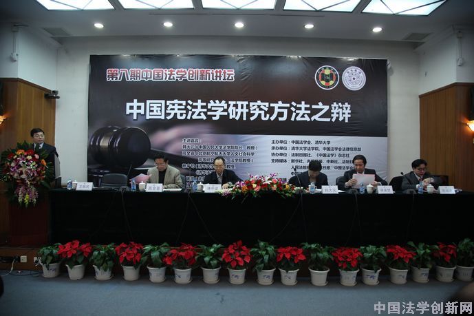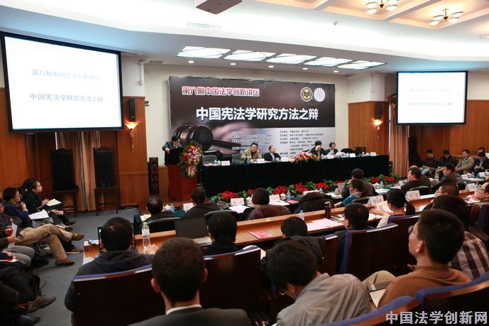 本期講壇在形式上比以往有重大突破,幾位主講人從各自的研究立場、研究方法出發(fā),對我國社會轉型中涌現出的各種憲法問題多角度地進行切入,形成方法論層面的交鋒和不同學派之爭。隨著憲法學研究方法的多元化,規(guī)范憲法學、社會憲法學、政治憲法學、憲法解釋學、憲法經濟學、憲法人類學等憲法流派或憲法部門正在我國逐漸形成。在研究方法上擁有共同見識的學者自發(fā)地形成學術群體或學術流派,通過爭鳴和批判,不斷反思自己的觀點、完善自己的理論,促使對方完善自己的觀點,使理論研究不斷走向深入。本期創(chuàng)新講壇以“中國憲法學研究方法之辯”為主題,為憲法解釋學、規(guī)范憲法學、政治憲法學搭建高端對話平臺,有利于推動憲法學方法論的進一步多元化,強化方法論的理論根基,在此基礎上,通過不懈努力,形成中國自己的憲法學派。