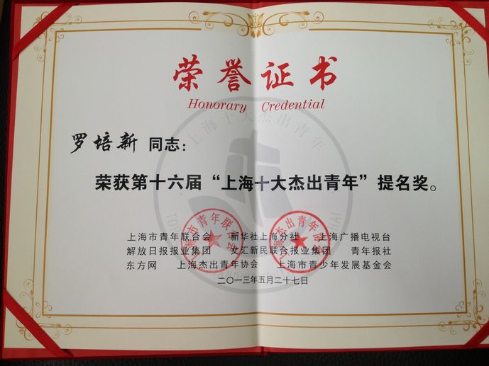 為積極培養(yǎng)舉薦青年優(yōu)秀人才,努力營造“崇尚杰出、追求卓越”的社會氛圍,由團(tuán)市委、市文明辦指導(dǎo),市青年聯(lián)合會、新華社上海分社等多家單位聯(lián)合主辦的第十六屆“上海十大杰出青年”評選活動于今年3月拉開帷幕;顒娱_展以來,我校團(tuán)委積極響應(yīng)號召,做好組織宣傳工作,在校內(nèi)發(fā)動青年教師參與申報。經(jīng)個人申報、組織推薦并經(jīng)校黨委討論,決定推薦羅培新申報。經(jīng)過組委會的嚴(yán)格審查,羅培新入圍20名正式候選人之一。根據(jù)網(wǎng)絡(luò)投票、現(xiàn)場答辯等程序,最終,羅培新榮獲第十六屆“上海十大杰出青年”提名獎。
