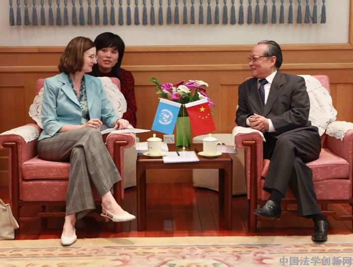 參加會見的還有中國法學會外聯(lián)部主任谷昭民,中國法學會法律信息部主任李仕春、副主任呂興煥、副處長周楊等,聯(lián)合國開發(fā)計劃署駐華代表處法治處處長谷青、項目助理肖園等。