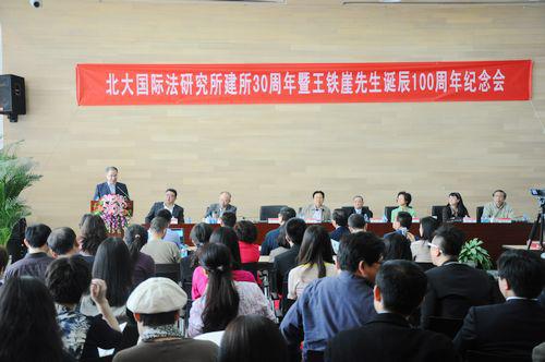 2013年5月4日上午,“北京大學(xué)國際法研究所建所30周年暨王鐵崖先生誕辰100周年紀(jì)念會”在北大法學(xué)院報告廳隆重舉行。來自社會各界的近百位校友、王鐵崖先生的家人、北大國際法專業(yè)師生,以及包括新華社在內(nèi)的多家媒體記者參加了本次紀(jì)念會。紀(jì)念會由北大國際法研究所副所長、北大法學(xué)院副教授宋英老師主持。