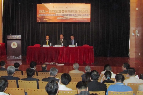 2013年4月25日至27日,由中國人民大學法學院倡議發(fā)起的“內(nèi)地-澳門法治發(fā)展高峰論壇”、“內(nèi)地—香港法治發(fā)展高峰論壇”先后在澳門、香港兩地成功舉辦,論壇為三地法學學術(shù)界、法律實務界提供了交流平臺,加強了內(nèi)地與港澳地區(qū)的法治交流,取得良好效果。