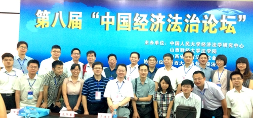6月15日,第八屆中國經(jīng)濟法治論壇在太原成功舉辦。本次論壇由中國人民大學經(jīng)濟法學研究中心、山西財經(jīng)大學法學院、山西省經(jīng)濟法研究會主辦,山西大學商務學院法學系協(xié)辦,論壇的主題為“加快完善社會主義市場經(jīng)濟體制與經(jīng)濟法治建設”。來自全國各高校和科研機構(gòu)的百余位學者共聚一堂,圍繞如何處理好政府和市場關(guān)系、發(fā)揮市場在資源配置中基礎性作用、宏觀調(diào)控機制化等問題進行廣泛而深入的交流與研討。我院劉文華教授、史際春教授、吳宏偉教授、王欣新教授、朱大旗教授、王宗玉副教授、孟雁北副教授、姚海放副教授、徐陽光副教授、胡天龍助理教授及部分博士生、碩士生同學參加本次論壇。 論壇開幕式由山西省經(jīng)濟法研究會會長、山西財經(jīng)大學法學院馬躍進教授主持。中國法學會經(jīng)濟法學研究會副會長、中國人民大學經(jīng)濟法學研究中心主任史際春教授,山西財經(jīng)大學法學院院長閆立宏教授,山西財經(jīng)大學校長郭澤光教授,中國信達資產(chǎn)管理股份有限公司法律合規(guī)部總經(jīng)理羅振宏先生等領(lǐng)導嘉賓先后致辭,祝賀論壇成功召開。