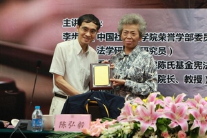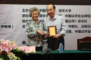 中國法學創(chuàng)新網(wǎng)訊 6月6日上午,由中國法學會和清華大學共同主辦、法制日報社協(xié)辦、中國法學會法律信息部和清華大學法學院共同承辦的第9期中國法學創(chuàng)新講壇在清華大學隆重舉行。圍繞“法治之道”的主題,主講嘉賓中國社會科學院榮譽學部委員李步云教授、香港大學法學院陳弘毅教授、清華大學法學院王振民教授,為到場的近200名師生奉獻了一場異彩紛呈的學術(shù)盛宴。中國法學會常務(wù)副會長劉飏同志出席講壇并為主講嘉賓頒發(fā)演講紀念牌。講壇由清華大學法學院副院長申衛(wèi)星教授主持。講壇歷時3個多小時,3位主講嘉賓對法治的內(nèi)涵、法治的目標、法治的實現(xiàn)路徑、中西方法治理論的比較等重大問題發(fā)表了精彩的見解,并與在場聽眾展開了交流。講壇取得圓滿成功。