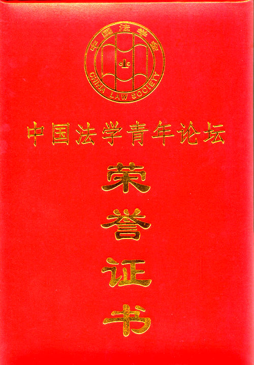 第八屆中國法學(xué)青年論壇榮譽(yù)證書封面