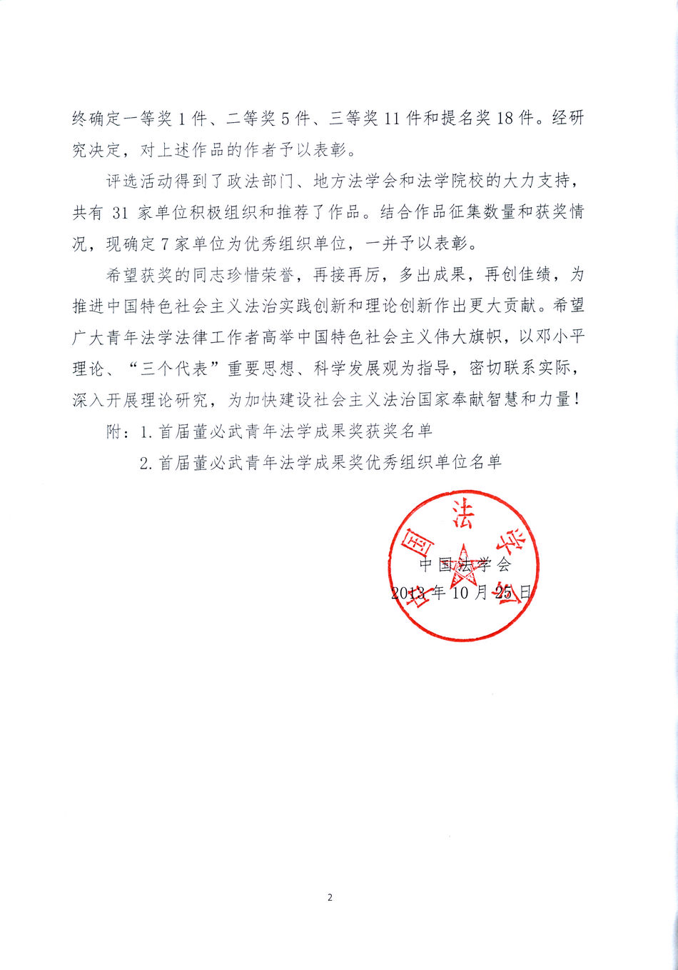 附2:優(yōu)秀組織單位名單:首屆董必武青年法學成果獎