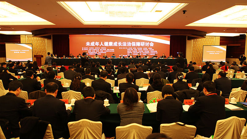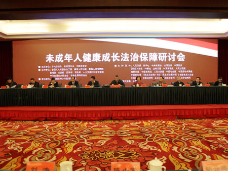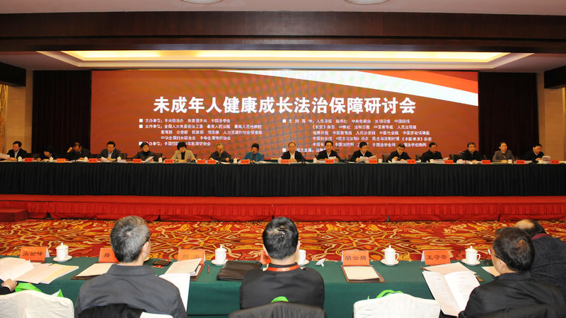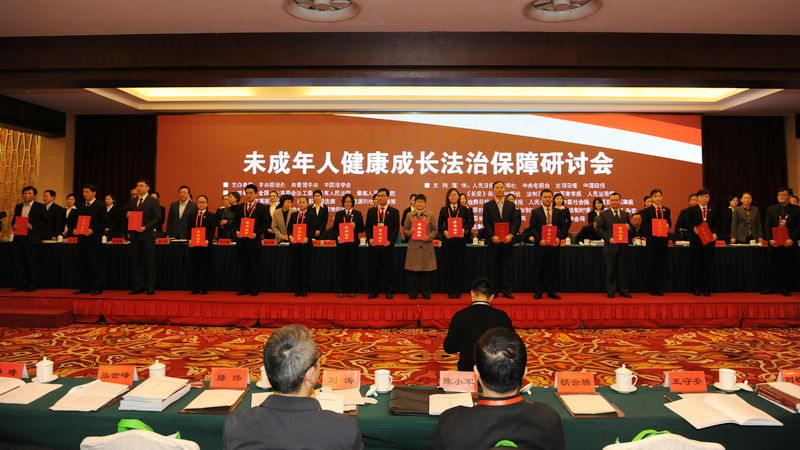 原中共中央政治局委員、中國法學會會長王樂泉,十屆全國人大常委會副委員長、中國關心下一代工作委員會主任顧秀蓮,中央政法委副秘書長、中央綜治辦主任陳訓秋,共青團中央書記處書記汪鴻雁出席研討會并講話。全國人大內務司法委副主任委員陳秀榕,全國人大常委會法制工作委員會副主任闞珂,最高人民法院黨組成員、副院長黃爾梅,最高人民檢察院檢察委員會副部級專職委員陳連福,教育部黨組成員、副部長郝平,民政部黨組成員、副部長竇玉沛,司法部黨組成員、副部長張?zhí)K軍,中華全國婦女聯(lián)合會黨組成員、書記處書記譚琳,中華全國律師協(xié)會會長王俊峰發(fā)表主題演講。研討會由中國法學會黨組書記、常務副會長陳冀平主持,主題發(fā)言環(huán)節(jié)由中國法學會黨組成員、副會長、學術委員會主任張文顯主持,中央綜治辦專職副主任徐顯明在頒獎環(huán)節(jié)宣讀“表彰決定”。來自法學理論和實踐部門的專家學者近150人參加了研討會。