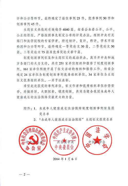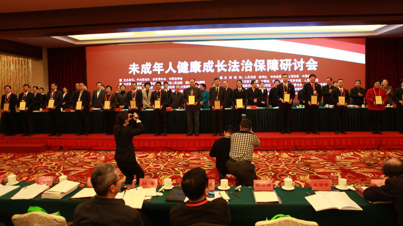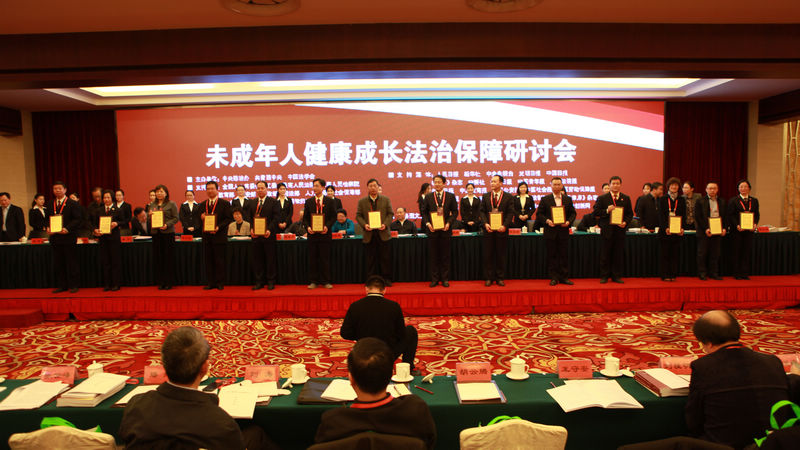 頒獎儀式由中央綜治辦專職副主任徐顯明同志宣讀《中央綜治辦、共青團中央、中國法學會關于未成年人健康成長法治保障制度創(chuàng)新事例征集、主題征文的表彰決定》。