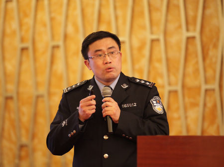 安徽省池州市公安局黨委委員、紀委書記楊玉兵介紹最佳事例《“平安校園”服務平臺》,中國法學會《民主與法制》社總編輯劉桂明評議