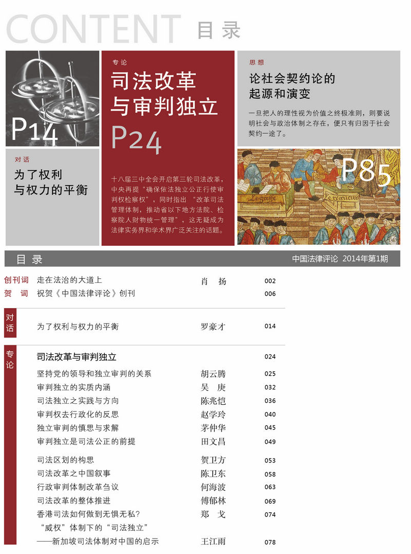 《中國(guó)法律評(píng)論》設(shè)有“對(duì)話”、“專論”、“思想”、“判解”、“影像”、“批評(píng)”和“策略”等欄目,為中國(guó)立法、行政和司法進(jìn)步提供多元思考的智慧資源。本刊將立足大中華,結(jié)合兩岸優(yōu)勢(shì),關(guān)注四地動(dòng)態(tài),融匯法治精英,借鑒國(guó)際經(jīng)驗(yàn),促進(jìn)兩岸四地法律實(shí)務(wù)及法學(xué)交流和進(jìn)步。