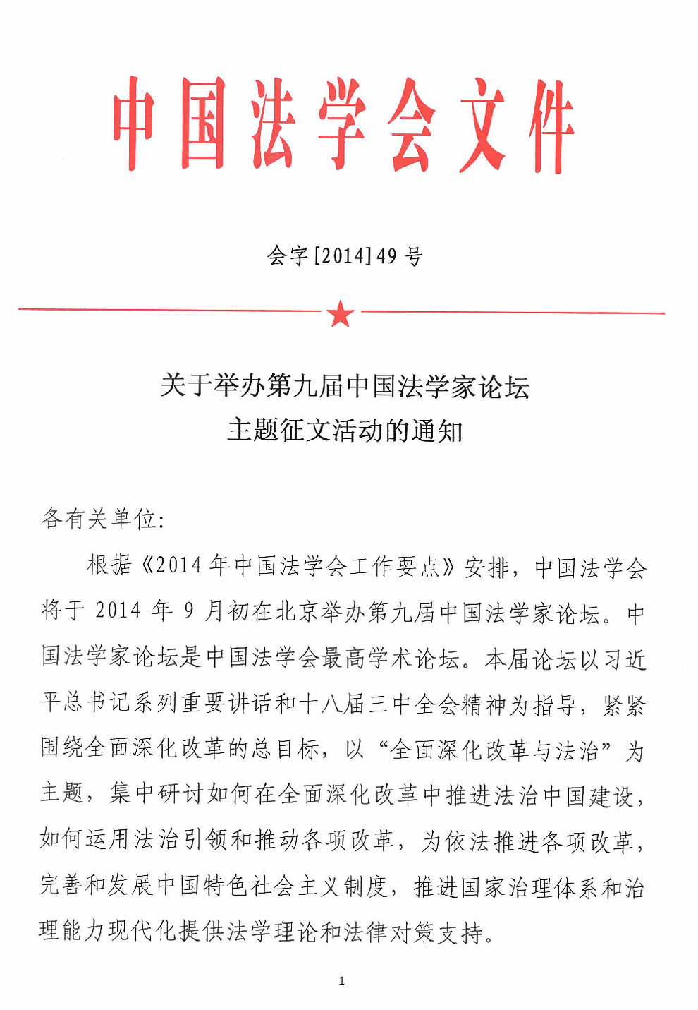 【時(shí)間提前】第九屆中國法學(xué)家論壇主題征文通知