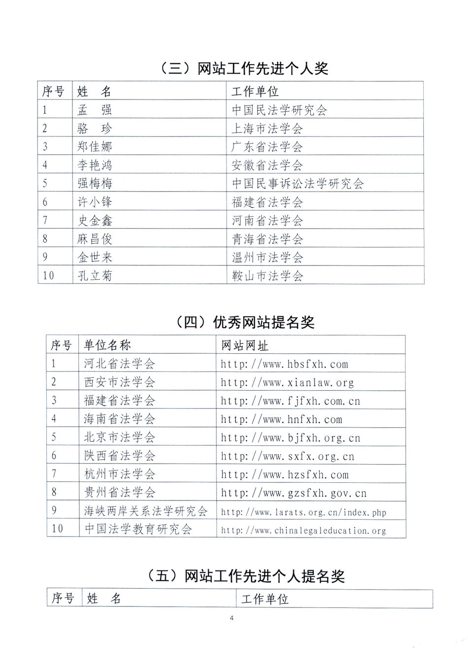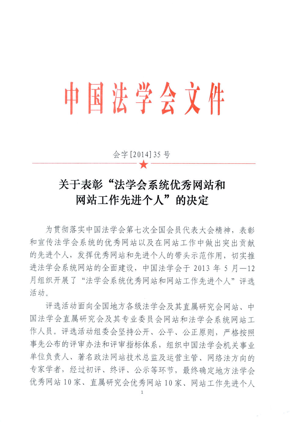 關(guān)于表彰”法學(xué)會(huì)系統(tǒng)優(yōu)秀網(wǎng)站和網(wǎng)站工作先進(jìn)個(gè)人“的決定