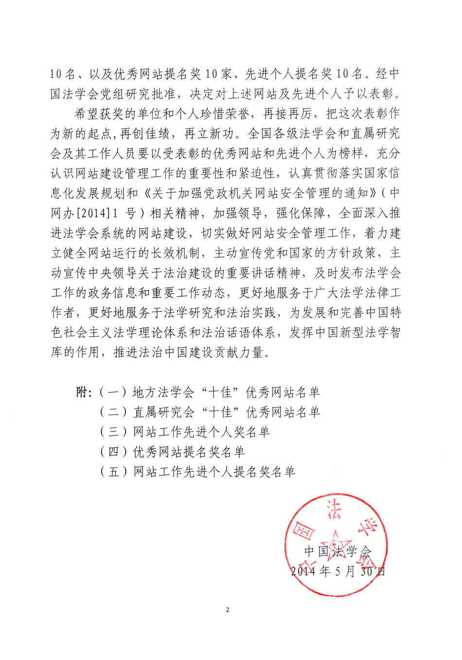 【表彰決定】法學(xué)會(huì)系統(tǒng)網(wǎng)站評(píng)選