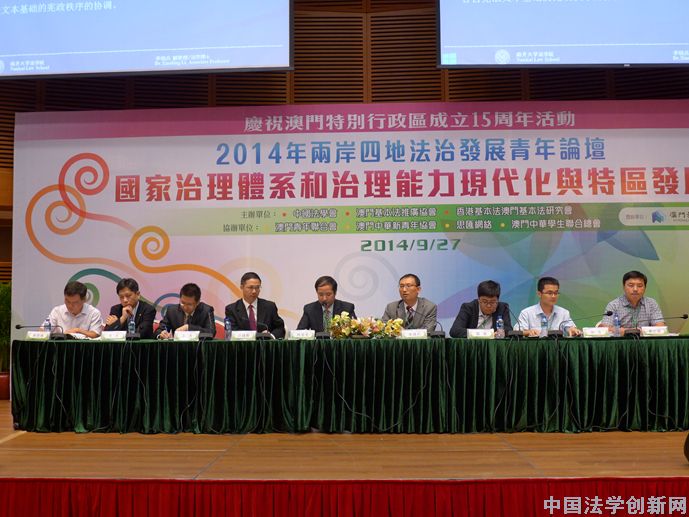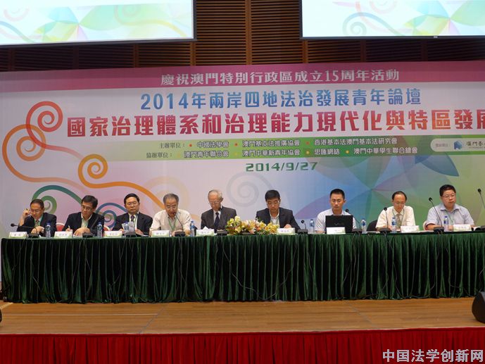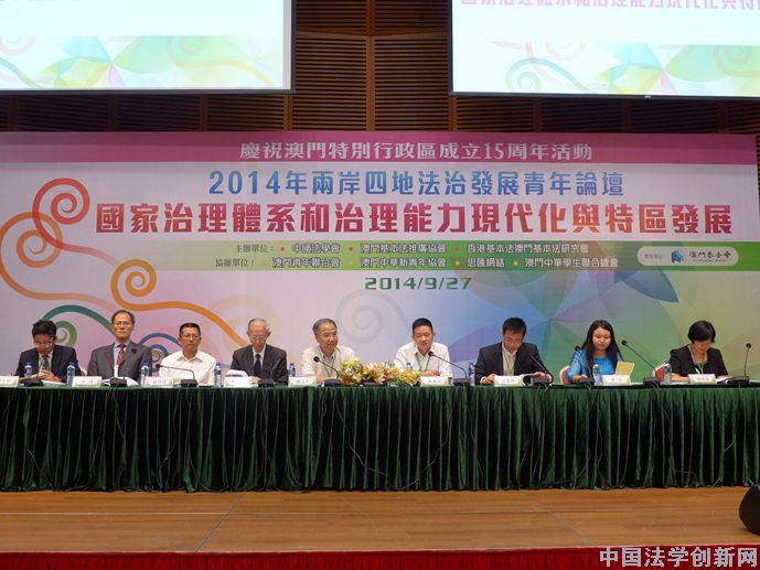 論壇主題為“國家治理體系和治理能力現(xiàn)代化與特區(qū)發(fā)展”。通過全國征文活動(dòng)遴選產(chǎn)生的12位青年法學(xué)法律工作者,與中國社會(huì)科學(xué)院、北京大學(xué)、清華大學(xué)、北京師范大學(xué)、上海交通大學(xué)、廣州大學(xué)、深圳大學(xué)、澳門大學(xué)、澳門理工學(xué)院、香港城市大學(xué)等高校和科研機(jī)構(gòu)的知名專家學(xué)者,針對“國家治理體系和治理能力現(xiàn)代化”、“中央與地方法治關(guān)系”、“特區(qū)法治發(fā)展”等三個(gè)專題進(jìn)行了熱烈而深入的交流。來自兩岸四地的法學(xué)理論和實(shí)踐部門的專家學(xué)者、澳門立法會(huì)部分議員和各青年團(tuán)體代表近兩百人參加了論壇。