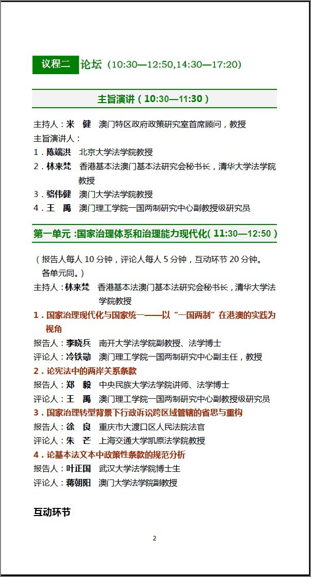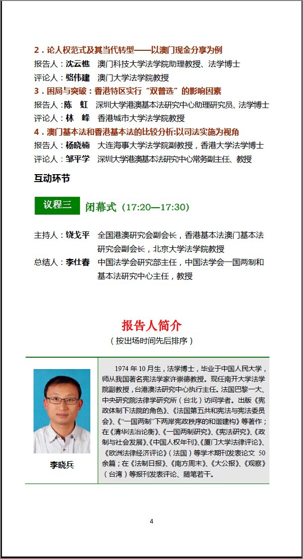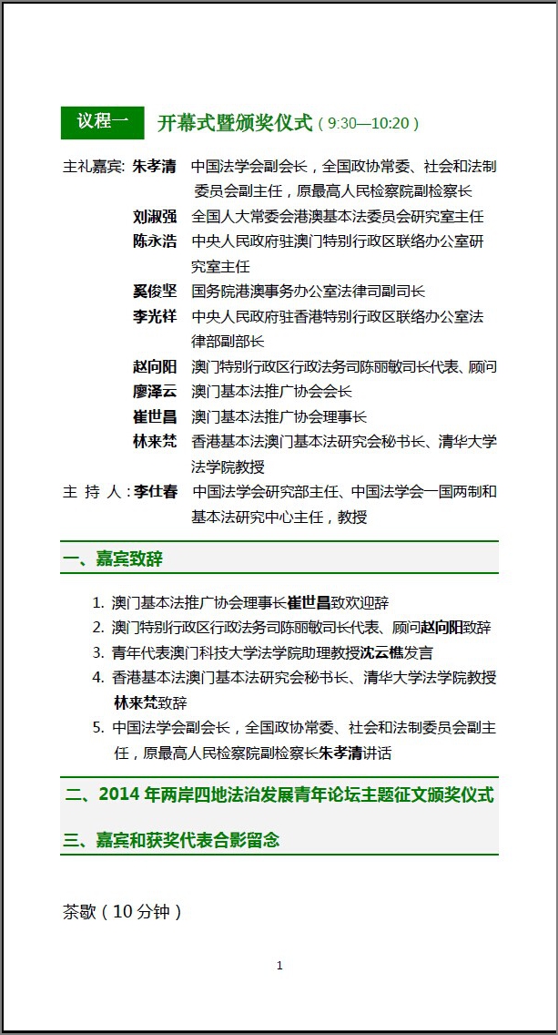 2014年兩岸四地法治發(fā)展青年論壇議程