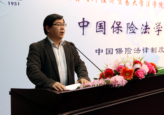 中國(guó)法學(xué)會(huì)研究部主任李仕春受中國(guó)法學(xué)會(huì)副會(huì)長(zhǎng)、全國(guó)人大法律委員會(huì)副主任張鳴起同志的委托,對(duì)本次年會(huì)召開表示熱烈的祝賀。他在致辭中對(duì)保險(xiǎn)法學(xué)研究會(huì)未來(lái)工作提出三點(diǎn)建議:一是加強(qiáng)保險(xiǎn)法學(xué)的基礎(chǔ)研究,二是把保險(xiǎn)法學(xué)研究會(huì)努力打造成新型專門智庫(kù),三是開展更為豐富的學(xué)術(shù)活動(dòng)以促進(jìn)創(chuàng)新人才培養(yǎng)。中國(guó)保監(jiān)會(huì)法規(guī)部副主任叢林高度贊揚(yáng)了本次會(huì)議對(duì)于提高保險(xiǎn)業(yè)的法治化水平的重要意義,認(rèn)為要增強(qiáng)法律法規(guī)的及時(shí)性、針對(duì)性、有效性,充分發(fā)揮立法對(duì)保險(xiǎn)業(yè)的引領(lǐng)和推動(dòng)作用,并對(duì)接下來(lái)為期一天半的會(huì)議給予美好祝愿與希冀。中國(guó)保險(xiǎn)資產(chǎn)管理業(yè)協(xié)會(huì)執(zhí)行副會(huì)長(zhǎng)兼秘書長(zhǎng)曹德云在致辭中指出,要更多關(guān)注保險(xiǎn)實(shí)際運(yùn)用及資產(chǎn)管理等方面的問題,強(qiáng)調(diào)要?jiǎng)?chuàng)新法律思維,為實(shí)際問題服務(wù)。中華聯(lián)合財(cái)產(chǎn)保險(xiǎn)股份有限公司總裁助理兼合規(guī)負(fù)責(zé)人聶尚君、臺(tái)灣人壽股份保險(xiǎn)有限公司大陸事務(wù)首席執(zhí)行長(zhǎng)趙麟先后發(fā)表精彩致詞。對(duì)外經(jīng)濟(jì)貿(mào)易大學(xué)法學(xué)院石靜霞院長(zhǎng)代表會(huì)議承辦方致辭:承辦本屆年會(huì)是對(duì)外經(jīng)濟(jì)貿(mào)易大學(xué)法學(xué)院成立30周年慶祝活動(dòng)的重要內(nèi)容,向與會(huì)同仁們致以誠(chéng)摯感謝;法學(xué)院在保險(xiǎn)法研究教學(xué)方面,除了關(guān)注保險(xiǎn)法核心內(nèi)容和傳統(tǒng)的部分之外,我們還特別關(guān)注國(guó)際貿(mào)易中的保險(xiǎn)法問題,海上保險(xiǎn)問題,互聯(lián)網(wǎng)金融對(duì)保險(xiǎn)法提出的一些新問題,也是我們正在跟蹤的研究領(lǐng)域。通過這次年會(huì),我們非常期待與各位專家學(xué)者及實(shí)務(wù)精英的思想交流,火花碰撞。中國(guó)保險(xiǎn)法學(xué)研究會(huì)會(huì)長(zhǎng)尹田教授致辭,他提出保險(xiǎn)法的研究雖取得初步發(fā)展,但未來(lái)發(fā)展道路還很漫長(zhǎng),需要學(xué)術(shù)界克服的障礙與困難還很多,需要不斷積累整合資源,激發(fā)團(tuán)隊(duì)活力,爭(zhēng)取立足于保險(xiǎn)法研究前沿,不斷推動(dòng)我國(guó)保險(xiǎn)法學(xué)發(fā)展。