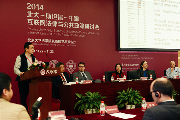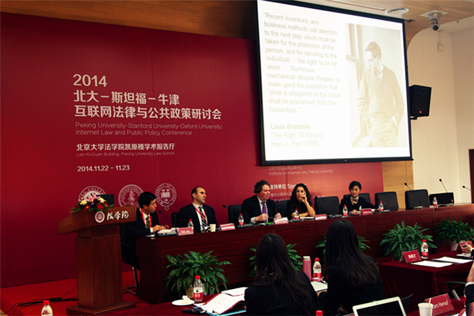 2014年11月22-23日,由北京大學法學院、斯坦福大學法學院以及牛津大學法學院共同主辦,北京大學知識產(chǎn)權學院、北京大學互聯(lián)網(wǎng)法律中心承辦,騰訊互聯(lián)網(wǎng)與社會研究院支持的“2014北大-斯坦福-牛津:互聯(lián)網(wǎng)法律與公共政策研討會”,在北京大學法學院凱原樓學術報告廳隆重召開。
