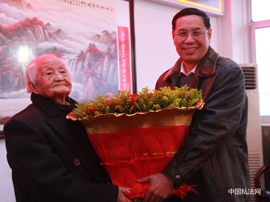 武漢大學(xué)余能斌教授向李靜堂教授90大壽表示祝賀。余教授作為李教授的學(xué)生,同時也因日后的工作和生活,與李教授結(jié)下了深厚的友誼,余教授表示這段“亦師亦友”的情誼將永生銘記。余教授還賦詩一首,以賀李教授90華誕。詩曰:“米壽剛過祝九秩,百歲延年亦如斯。人羨桃紅丹富貴,吾獨愛李松筠姿。” 原省委組織部常務(wù)副部長、中南政法學(xué)院客座教授謝允堅先生以及原湖北省委宣傳部、湖北著名書法家張葆華先生,作為李靜堂教授大學(xué)時代的同班同學(xué),深情回憶了往昔的點滴時光,并表示對李靜堂教授在立法以及科研上取得的成就表示驕傲,祝老同學(xué)長壽健康。