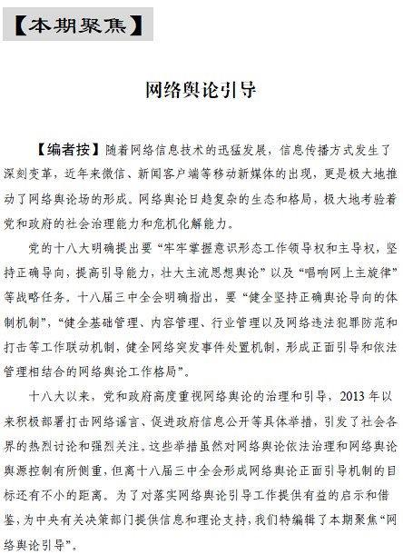 關(guān)于網(wǎng)絡(luò)輿論引導(dǎo)的對策建議.................................本刊編輯部 2