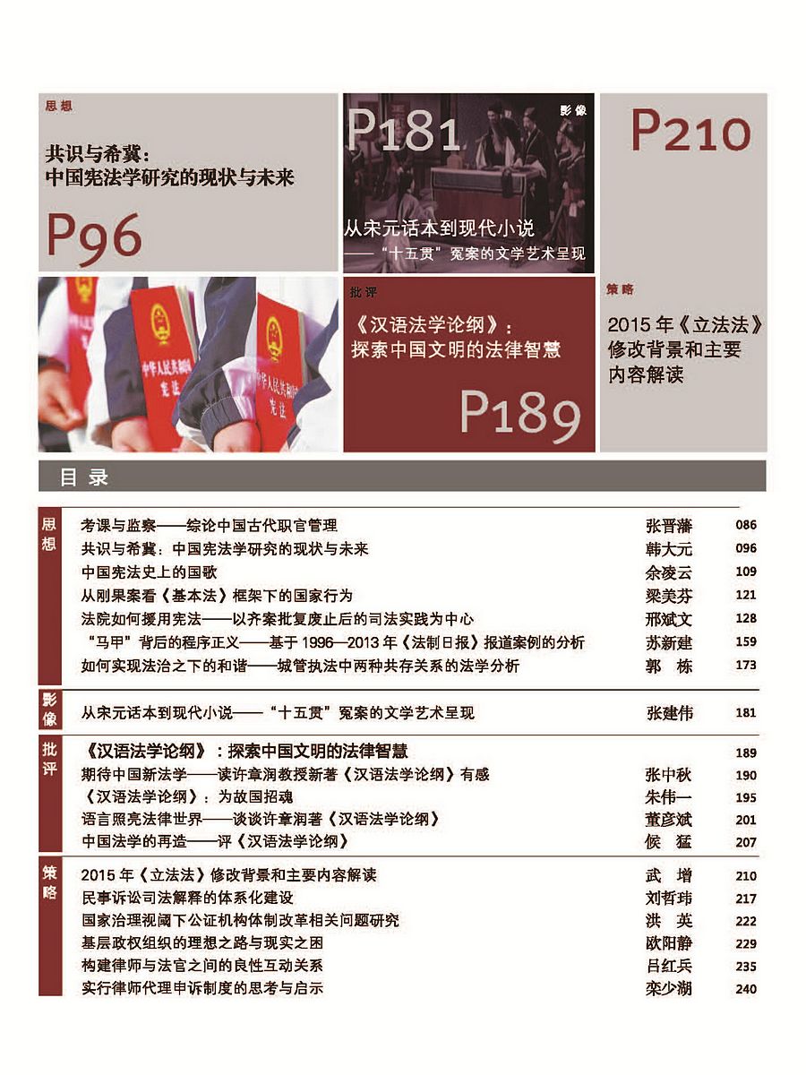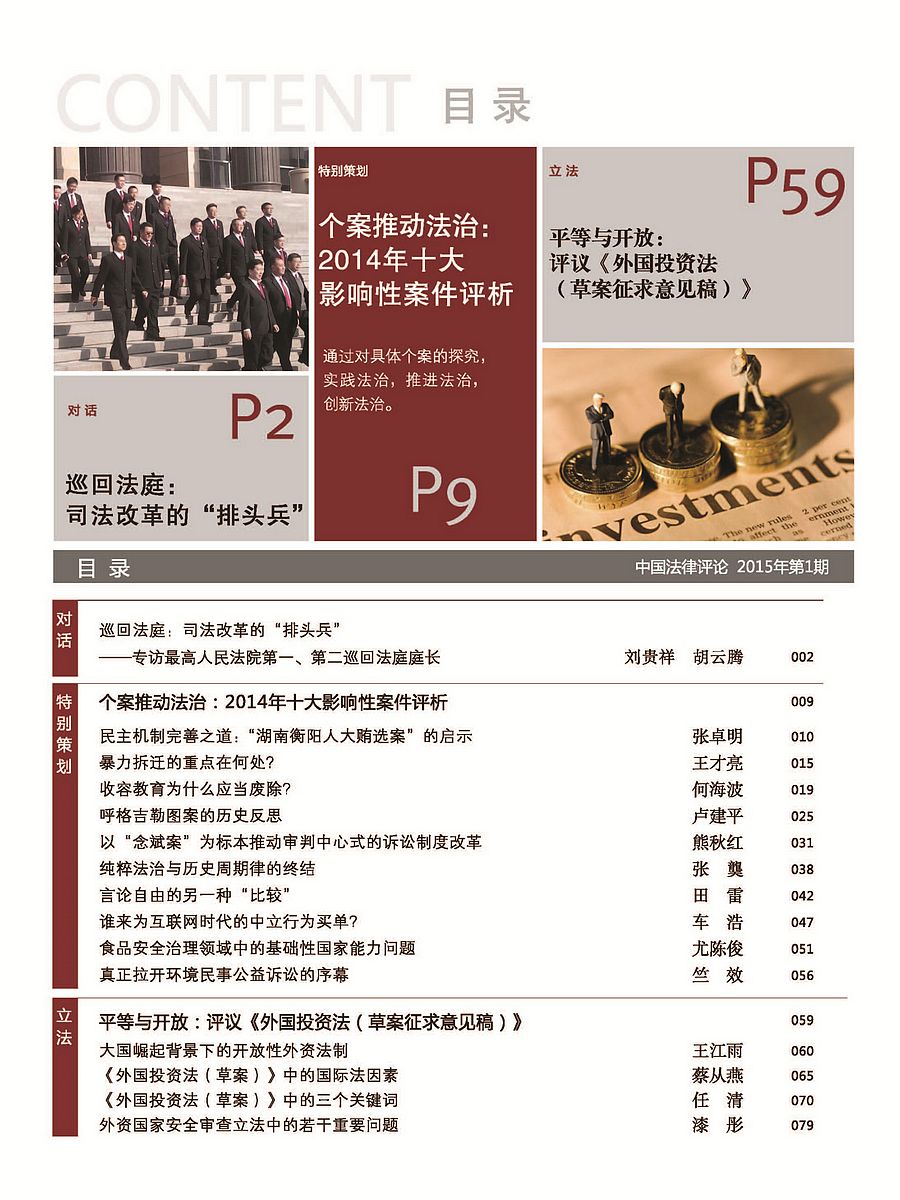 《中國法律評論》2015年第1期出刊