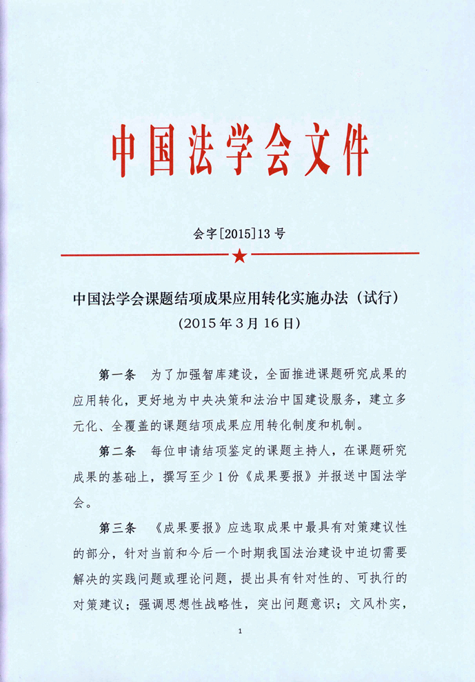 中國(guó)法學(xué)會(huì)課題結(jié)項(xiàng)成果應(yīng)用轉(zhuǎn)化實(shí)施辦法(試行)