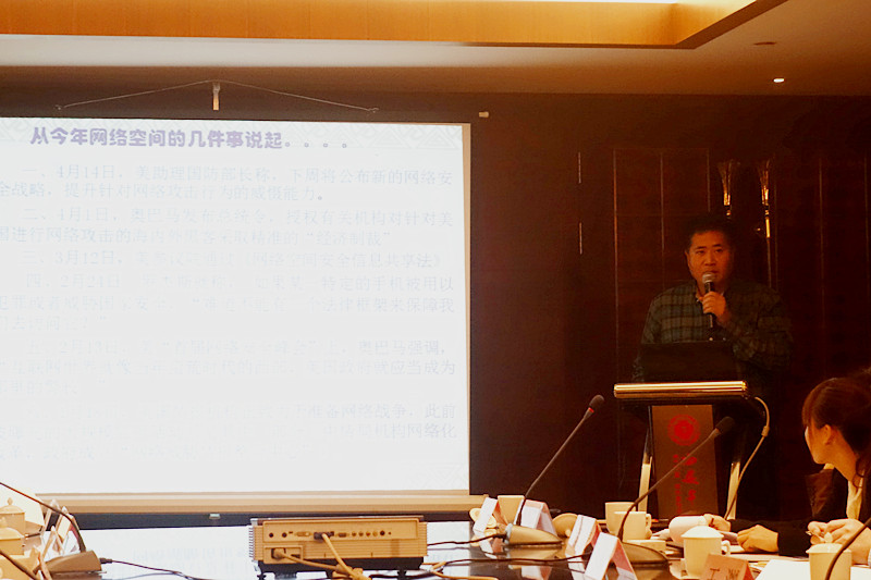 研討會第二階段:北京奇虎科技有限公司知識產(chǎn)權(quán)總監(jiān)黃晶進(jìn)行了題為“工業(yè)4.0背景下的未來生活愿景及信息安全威脅”的主題發(fā)言,他認(rèn)為,大數(shù)據(jù)的發(fā)展在便利人們生活的同時也帶來了安全威脅,因此,盡快完善我國網(wǎng)絡(luò)安全立法成為迫切需求,同時建立健全互聯(lián)網(wǎng)安全監(jiān)管制度,為法律的貫徹和執(zhí)行提供制度保障?哲姽こ檀髮W(xué)理學(xué)院社科部教員閆倩以“網(wǎng)絡(luò)空間的法律屬性困境與信息安全立法”為題做了主題報告,基于西方對網(wǎng)絡(luò)空間法律屬性的界定,她引用2010年《中國互聯(lián)網(wǎng)狀況》白皮書網(wǎng)絡(luò)空間具有主權(quán)的相關(guān)論斷,探討了我國網(wǎng)絡(luò)主權(quán)觀下的網(wǎng)絡(luò)空間法律屬性,以及網(wǎng)絡(luò)空間法律屬性問題給信息安全立法帶來的國際挑戰(zhàn)。西安交通大學(xué)信息安全法律研究中心博士生馬寧進(jìn)行了“全球網(wǎng)絡(luò)安全戰(zhàn)略的變革——‘政策拐點’之后的軟法之治”為題的報告,他認(rèn)為,全球網(wǎng)絡(luò)安全戰(zhàn)略在理念、原則、目標(biāo)和策略等方面發(fā)生的重大變革,促使各國進(jìn)行網(wǎng)絡(luò)信息安全軟法之治的思考。公安部第三研究所所長助理金波圍繞這一階段的主題報告進(jìn)行了精彩的點評。