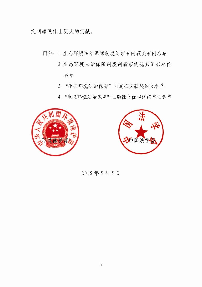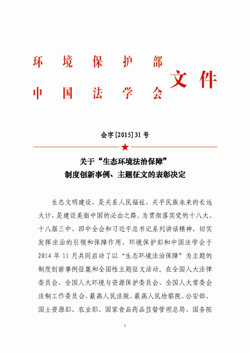 關(guān)于“生態(tài)環(huán)境法治保障”制度創(chuàng)新事例、主題征文的表彰決定(pdf版,點(diǎn)擊下載)