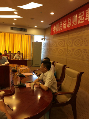 2015年6月27日下午,由中央財(cái)經(jīng)大學(xué)法學(xué)院主辦的“中國民法總則起草(制定)座談會”在中央財(cái)經(jīng)大學(xué)學(xué)術(shù)會堂604會議室成功舉辦。來自北京大學(xué)、清華大學(xué)、中國政法大學(xué)、中國人民大學(xué)、中央財(cái)經(jīng)大學(xué)、《中國法學(xué)》雜志社及臺北大學(xué)的專家學(xué)者和部分來自實(shí)務(wù)界的特邀嘉賓等近30人參加了座談會。