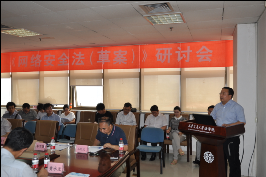 2015年6月,第十二屆全國(guó)人大常委會(huì)第十五次會(huì)議初次審議了《中華人民共和國(guó)網(wǎng)絡(luò)安全法(草案)》,現(xiàn)已面向社會(huì)公開征求意見。為了提升我國(guó)《網(wǎng)絡(luò)安全法》內(nèi)容的合理性,增強(qiáng)立法的實(shí)施效果,配合《網(wǎng)絡(luò)安全法(草案)》征求意見工作,2015年7月16日,由陜西省法學(xué)會(huì)信息安全法學(xué)研究會(huì)、西安交通大學(xué)信息安全法律研究中心,聯(lián)合公安部第三研究所、中國(guó)法學(xué)會(huì)法律信息部、互聯(lián)網(wǎng)實(shí)驗(yàn)室舉辦的“《網(wǎng)絡(luò)安全法(草案)》研討會(huì)”在西安交通大學(xué)主樓E-910會(huì)議室順利召開。