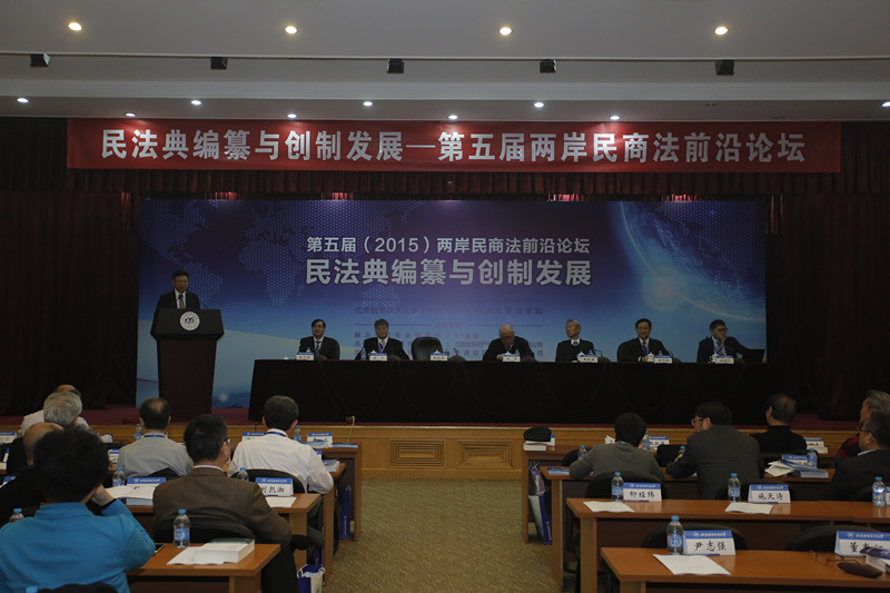 臺(tái)灣輔仁大學(xué)法學(xué)院陳榮隆教授、臺(tái)灣大學(xué)法學(xué)院王文宇教授、臺(tái)灣大學(xué)法學(xué)院陳自強(qiáng)教授、臺(tái)灣東吳大學(xué)法學(xué)院的鄭冠宇教授、政治大學(xué)法學(xué)院王千維教授、臺(tái)灣大學(xué)法學(xué)院吳從周教授、山東大學(xué)法學(xué)院郭明瑞教授、中國人民大學(xué)法學(xué)院楊立新教授、中南財(cái)經(jīng)政法大學(xué)陳小君教授、北京航空航天大學(xué)法學(xué)院龍衛(wèi)球教授、廈門大學(xué)法學(xué)院徐國棟教授、復(fù)旦大學(xué)法學(xué)院段匡教授、中國人民大學(xué)法學(xué)院董安生教授、中南財(cái)經(jīng)政法大學(xué)溫世揚(yáng)教授、煙臺(tái)大學(xué)法學(xué)院房紹坤教授、中國人民大學(xué)法學(xué)院葉林教授、北京大學(xué)法學(xué)院劉凱湘教授、清華大學(xué)法學(xué)院施天濤教授、最高人民法院賠償委員會(huì)辦公室副主任陳現(xiàn)杰博士、清華大學(xué)法學(xué)院韓世遠(yuǎn)教授、清華大學(xué)法學(xué)院申衛(wèi)星教授、對(duì)外經(jīng)濟(jì)貿(mào)易大學(xué)法學(xué)院梅夏英教授、中國政法大學(xué)民商經(jīng)濟(jì)法學(xué)院王涌教授、華東政法大學(xué)法律學(xué)院張禮洪教授、華東政法大學(xué)法律學(xué)院高富平教授、中國政法大學(xué)民商經(jīng)濟(jì)法學(xué)院田士永教授、中國社會(huì)科學(xué)院法學(xué)所謝鴻飛研究員、北京大學(xué)法學(xué)院薛軍教授、清華大學(xué)法學(xué)院王洪亮教授等,兩岸著名或知名民法學(xué)者就民法典總則編的起草中的重大疑難問題、物權(quán)法的理解與適用、債法的解釋論與立法論等主題進(jìn)行報(bào)告和交流。代表們一致認(rèn)為,應(yīng)當(dāng)在十八屆四中全會(huì)決定的指引下,團(tuán)結(jié)協(xié)作,盡快編纂一部具有中國特色的高質(zhì)量的民法典。