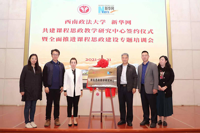 3月31日,新華網(wǎng)與西南政法大學(xué)共建課程思政教學(xué)研究中心簽約儀式在西南政法大學(xué)舉行。西南政法大學(xué)黨委常委、副校長岳彩申,教務(wù)處處長張建文、研究生院副院長曾妍、教務(wù)處副處長呂亮、教務(wù)處副處長張春良,新華網(wǎng)教育事業(yè)中心運營總監(jiān)徐晶等人參加簽約和揭牌儀式。