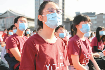 學(xué)生參加北京大學(xué)2020年開學(xué)典禮。新華社記者 任 超攝