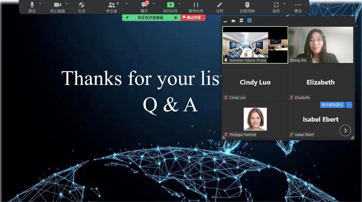 2023年1月26日,對外經(jīng)濟(jì)貿(mào)易大學(xué)法學(xué)院張欣副教授應(yīng)邀為牛津大學(xué)法學(xué)院i-Manage團(tuán)隊的師生就算法治理為主題進(jìn)行線上講座。此次講座是i-Manage團(tuán)隊就算法偏見和自動化決策啟動的系列研討的一部分。牛津大學(xué)法學(xué)院教授Jeremias Adams-Prassl和Rakshita Sangh負(fù)責(zé)召集該系列研討。講座由線上線下同步參與進(jìn)行。