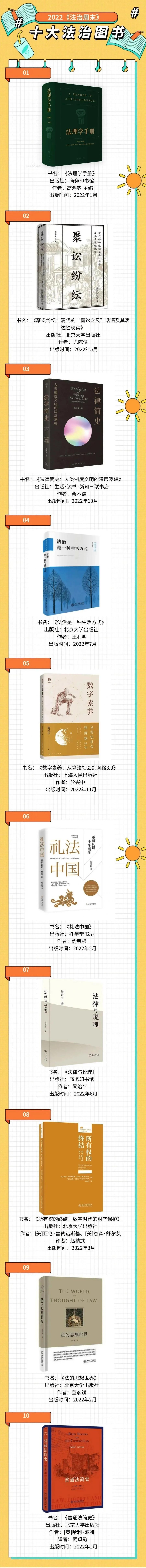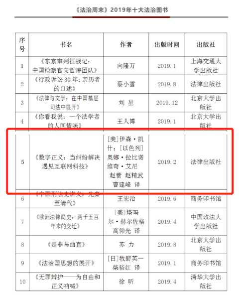 2022年年底,《法治周末》“十大法治圖書”評選活動如常舉辦。由16位資深法學(xué)專家組成的評審團秉持“學(xué)術(shù)性、思想性、人文性”的原則,進行了兩輪投票。在評委團意見的基礎(chǔ)上,結(jié)合讀者網(wǎng)絡(luò)投票結(jié)果,《法治周末》最終評選出2022年十大法治圖書,北京航空航天大學(xué)趙精武副教授譯著《所有權(quán)的終結(jié):數(shù)字時代的財產(chǎn)保護》上榜。