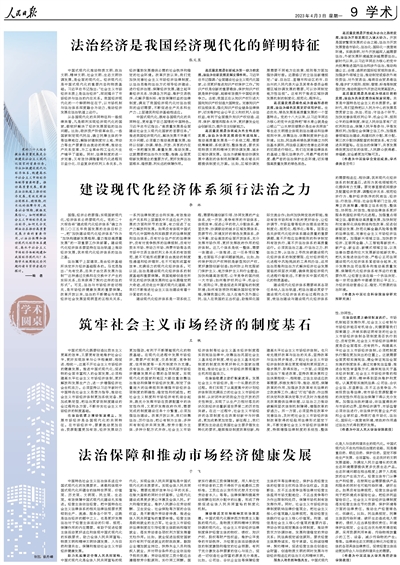 黨的二十大報告提出高質(zhì)量發(fā)展是全面建設(shè)社會主義現(xiàn)代化國家的首要任務(wù),作出加快建設(shè)現(xiàn)代化經(jīng)濟(jì)體系、構(gòu)建高水平社會主義市場經(jīng)濟(jì)體制等重要部署。推動高質(zhì)量發(fā)展,需要在法治軌道上推動經(jīng)濟(jì)發(fā)展,有效發(fā)揮法治固根本、穩(wěn)預(yù)期、利長遠(yuǎn)的保障作用,改善社會預(yù)期,提振發(fā)展信心。如何理解社會主義市場經(jīng)濟(jì)是法治經(jīng)濟(jì),如何充分發(fā)揮法治在推動高質(zhì)量發(fā)展方面的重要作用,以法治保障和推動現(xiàn)代化經(jīng)濟(jì)體系建設(shè)、高水平社會主義市場經(jīng)濟(jì)體制構(gòu)建和我國經(jīng)濟(jì)現(xiàn)代化?本期學(xué)術(shù)版圍繞這些問題約請專家學(xué)者進(jìn)行探討。