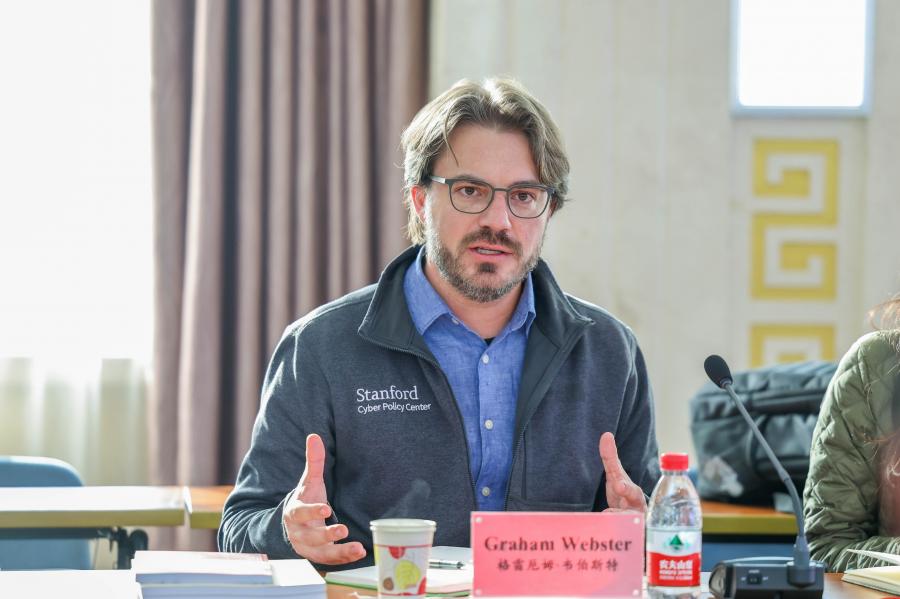 美方專家對兩所學者的介紹和分析給予積極評價,并介紹了美國有關(guān)人工智能治理的新發(fā)展。薩姆·薩克斯研究員介紹了在跨境數(shù)據(jù)流動領(lǐng)域,目前在美國國會提出的幾種議案以及相關(guān)評論,并強調(diào)了跨境數(shù)據(jù)流通、數(shù)據(jù)分享對于經(jīng)濟合作的重要性。格雷厄姆·韋伯斯特研究員表示,技術(shù)發(fā)展對雙邊關(guān)系和國際關(guān)系都會產(chǎn)生影響。他指出,人工智能是一個寬泛概念,對于人工智能的治理,首先需要找到其面臨的真正問題,并找到適當?shù)穆窂郊右越鉀Q。在人工智能政策方面,美國國內(nèi)也存在多種不同聲音。他倡議,政府應采取務(wù)實態(tài)度,加強人工智能治理國際合作,促進合作共贏,并推動國際關(guān)系的發(fā)展。伍人英教授認為,不同國家人工智能治理的政策和法律并不相同,也存在不對稱的問題,但這并不妨礙人工智能治理的國際合作。不同國家應該開展人工智能治理的法律與政策對話,努力減少和消除此種不對稱帶來的消極影響。