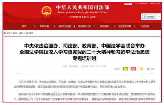 中央依法治國辦、司法部、教育部、中國法學(xué)會聯(lián)合舉辦全國法學(xué)院校深入學(xué)習(xí)貫徹黨的二十大精神和習(xí)近平法治思想專題培訓(xùn)班
