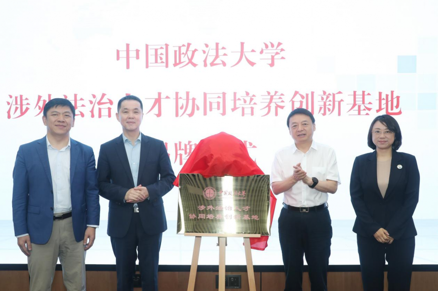 茍海波、沈佩蘭、馬懷德等共同為“中國(guó)政法大學(xué)涉外法治人才協(xié)同培養(yǎng)創(chuàng)新基地”揭牌。胡靜、孫巍與馬懷德共同為“中國(guó)政法大學(xué)涉外法治人才培養(yǎng)實(shí)踐教學(xué)基地”揭牌。