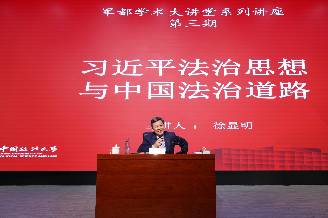 11月14日晚,由教務(wù)處主辦、法學(xué)院承辦的軍都學(xué)術(shù)大講堂第三期在昌平校區(qū)劉皇發(fā)報(bào)告廳隆重舉行。本次講座特邀中國(guó)法學(xué)會(huì)法理學(xué)研究會(huì)名譽(yù)會(huì)長(zhǎng)、教育部高等學(xué)校法學(xué)類專業(yè)教學(xué)指導(dǎo)委員會(huì)主任委員、中國(guó)政法大學(xué)原校長(zhǎng)徐顯明,以“習(xí)近平法治思想與中國(guó)法治道路”為主題進(jìn)行深入講解,副校長(zhǎng)劉艷紅出席并主持,全校師生數(shù)百人到場(chǎng)聆聽(tīng)。