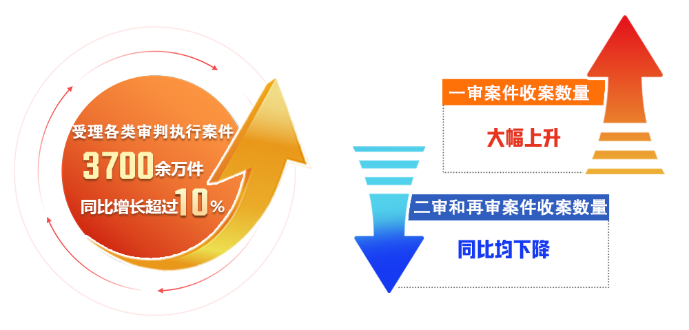 執(zhí)行案件辦理情況。人民法院持續(xù)深化執(zhí)行改革,穩(wěn)步推進(jìn)執(zhí)行規(guī)范化建設(shè),不斷提升執(zhí)行辦案治理效能。受理首次執(zhí)行案件數(shù)量超過1000萬件,同比上升超過15%。辦理保全執(zhí)行案件580余萬件,同比上升近5%。通過深入開展交叉執(zhí)行攻堅(jiān)工作,大量難案、積案得到有效化解,執(zhí)行完畢率、執(zhí)行到位率保持高位,執(zhí)行到位金額2.16萬億元,有力兌現(xiàn)當(dāng)事人勝訴權(quán)益,人民群眾司法獲得感不斷提升。全國法院積極推動(dòng)失信被執(zhí)行人信用修復(fù),助力市場(chǎng)主體信用重生,累計(jì)信用修復(fù)260余萬人次,信用修復(fù)人次連續(xù)七個(gè)季度超過新納入失信名單數(shù),大量企業(yè)得以正常投入生產(chǎn)、經(jīng)營,執(zhí)行工作服務(wù)經(jīng)濟(jì)社會(huì)作用持續(xù)顯現(xiàn)。